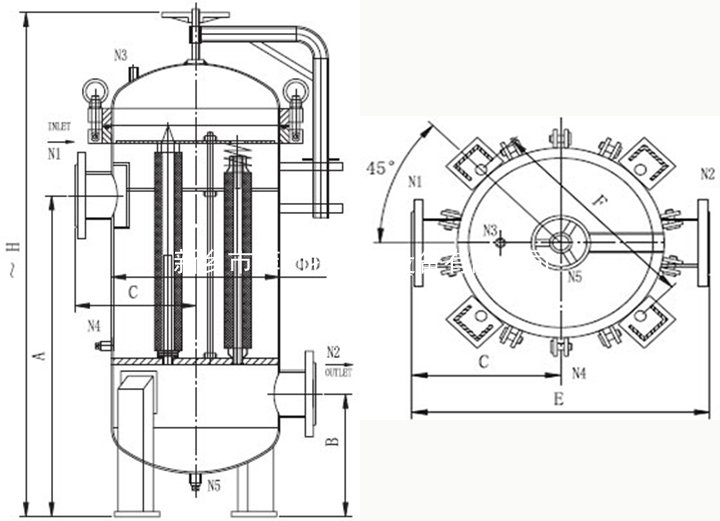 罐體為不銹鋼,內(nèi)裝PP濾芯,經(jīng)過濾芯空隙大于濾芯精度的攔截固體顆粒,流出澄清的液體。 保安過濾器常規(guī)精度有1um,5um,10um,50um,100um等。 常用的是5um。 保安過濾器流量:可做到1噸到200噸。