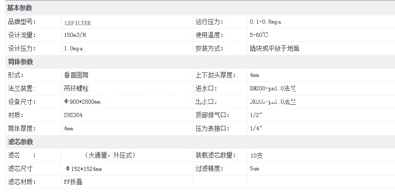 (5)大流量保安過濾器濾芯材料潔凈度高,對過濾介質(zhì)無污染;