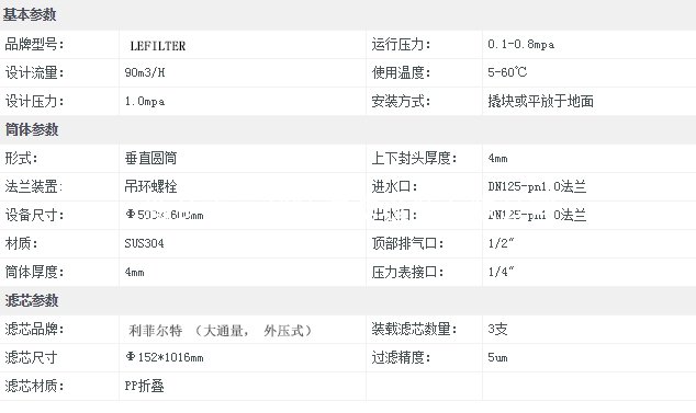 大流量保安過濾器(精密過濾器)摒棄了傳統(tǒng)過濾器所用的PP熔噴濾芯,而改用大流量的濾芯,大流量濾芯單支出水量大可達(dá)50m3/H,在通水量方面1支40“大流量濾芯相當(dāng)于20支PP熔噴濾芯,1支60“大流量濾芯相當(dāng)于30支PP熔噴濾芯,這意味著過濾器體積可以更小更緊湊,更換濾芯更加簡單快捷,且運(yùn)行費(fèi)用更低。